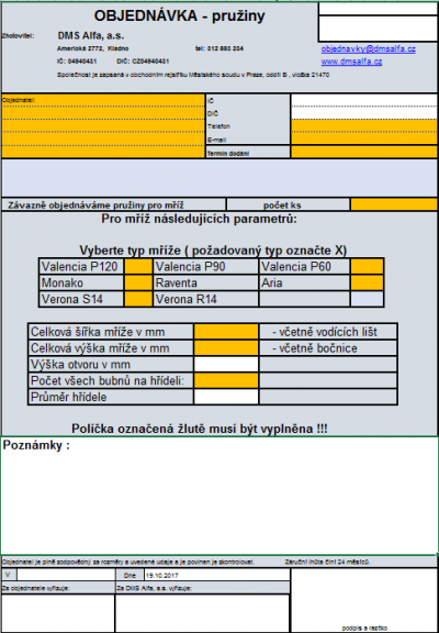 Nový objednávkový formulář na pružiny k rol. mřížím