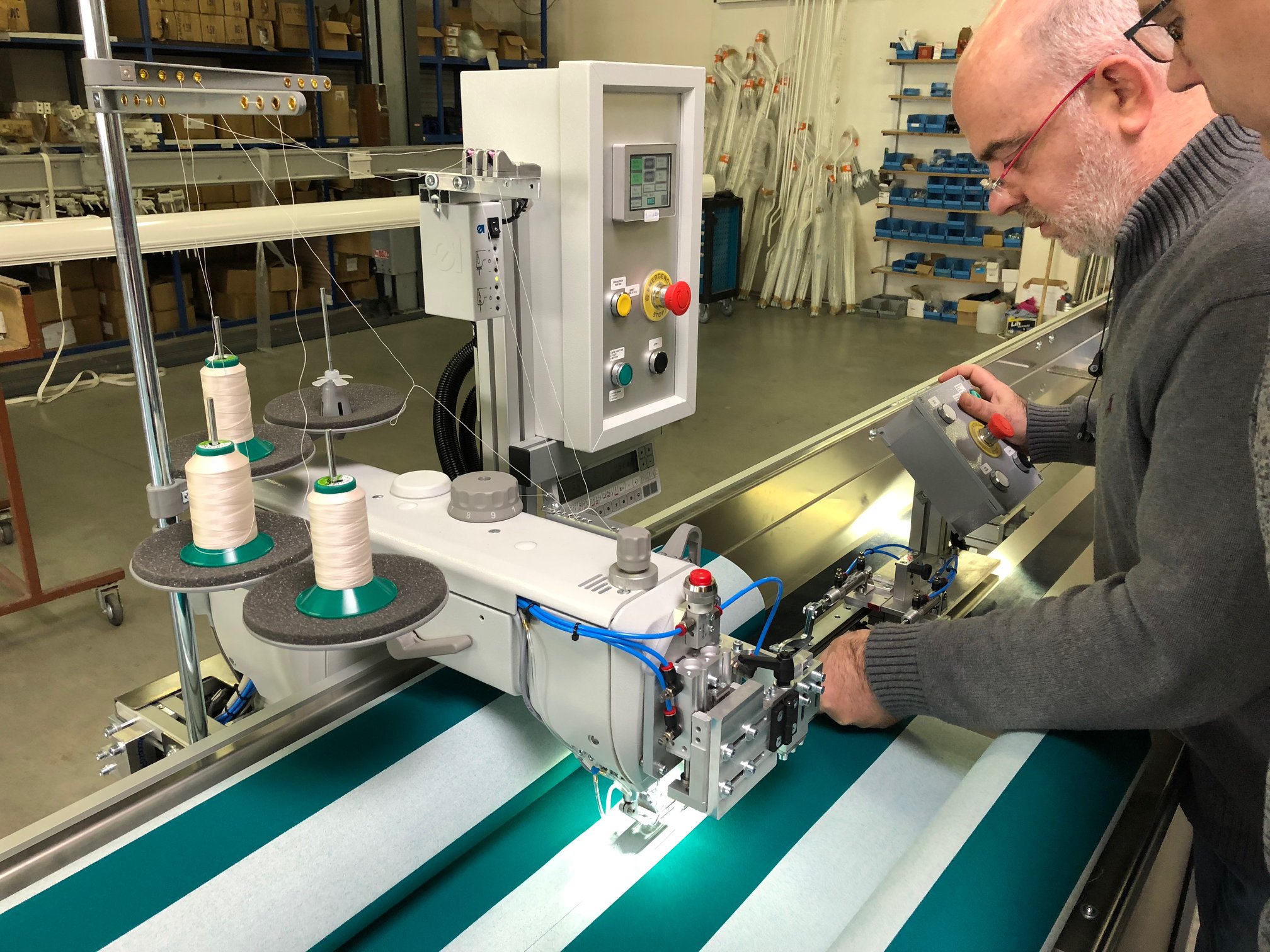 Pro nastávající letní sezónu jsme zakoupili nejmodernější automatický šicí stroj v ČR na markýzové látky. Stroj má úžasnou rychlost 2500 stehů za